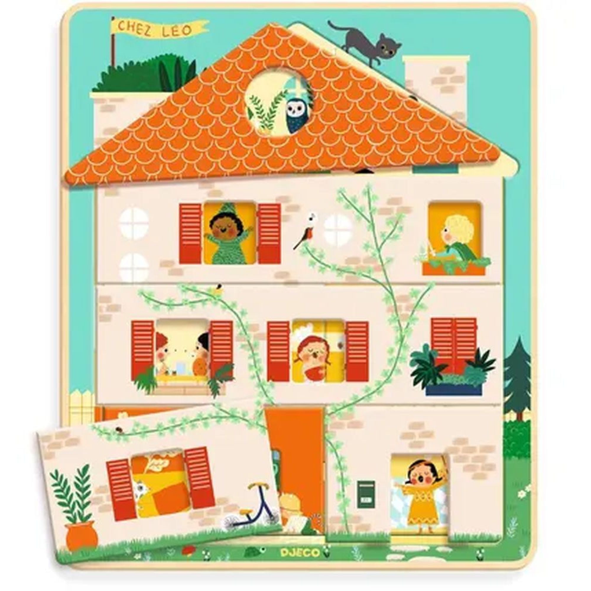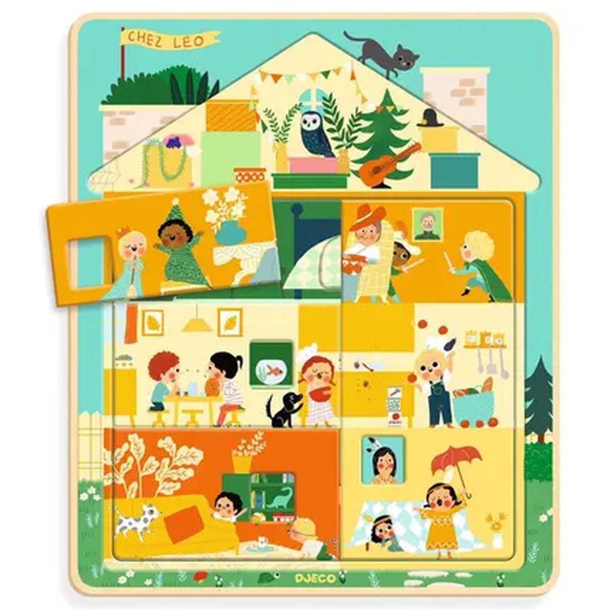 Découvrez le puzzle en bois 3 niveaux pour enfant Chez Léo de la marque Djeco. Ces 3 puzzles sont sur le thème de la vie dans la maison pour permettre à votre enfant de se familiariser avec ces moments là.