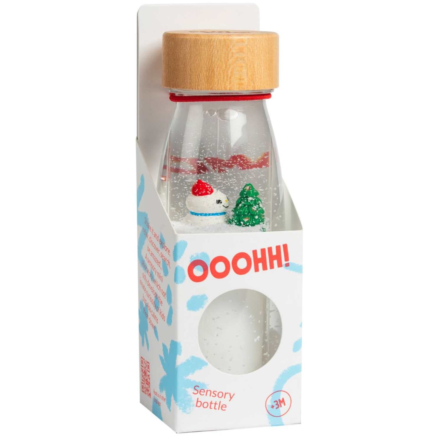 La musique de Noël résonne comme des grelots faits de glaçons. Si vous secouez votre bouteille, une tempête hivernale éclatera et parmi le tintement des flocons glacés, les parties composant le corps du mystérieux chef d'orchestre apparaîtront. C'est Mr Snowman, le bonhomme de neige. Ses yeux sont deux boutons ; son nez, une carotte ; ses bras, deux branches de cèdre. Pouvez-vous trouver son haut-de-forme de gentleman ? N'oubliez pas de lui demander de vous raconter ses secrets avant l'arrivée du printemps !