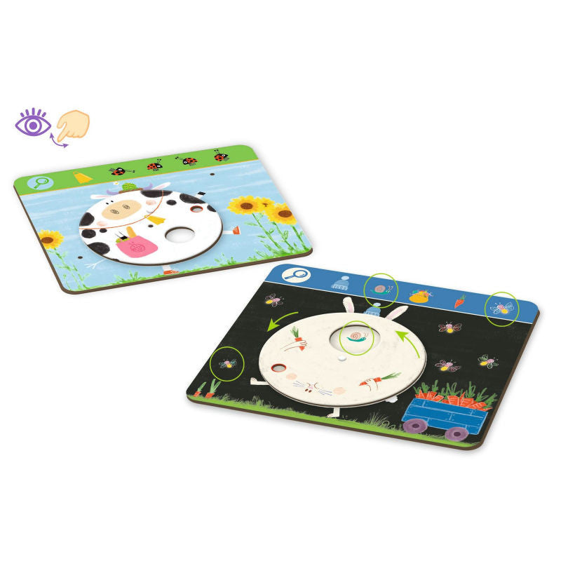 Le côté tactile du jeu rend l'expérience captivante. Tourner, manipuler et explorer les animations aidera l'enfant à développer sa motricité fine. Un jeu qui travaillera également sa capacité à analyser et à reconnaître des détails dans les images. Chaque planche illustrée constituera aussi un merveilleux support pour imaginer de belles histoires impliquant tous les petits animaux dont l'enfant pourra apprendre le nom et ainsi enrichir son vocabulaire.