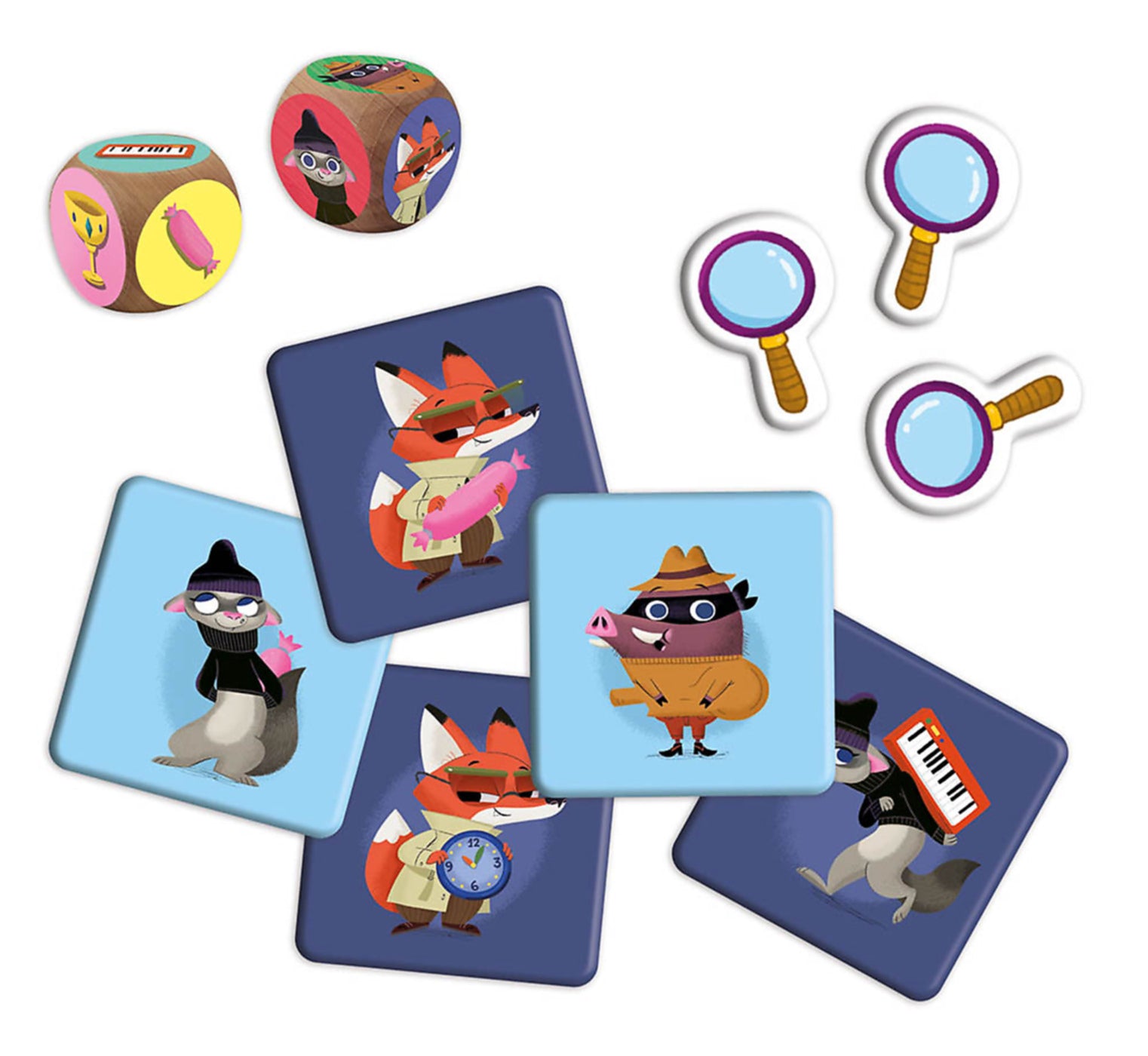 Lance le dé Animal et le dé Objet puis retrouve le coupable qui correspond parmi les 18 t
