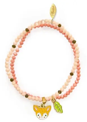 Plongez dans l'univers enchanteur de la forêt avec ce bracelet orné de perles en acrylique de qualité et de charms en métal émaillé inoxydable représentant un renard et une feuille. De délicates touches de vert et de doré apportent une note chaleureuse et raffinée à votre poignet. Son double fil élastique assure une solidité optimale tout en garantissant un enfilage facile, sans fermoir.