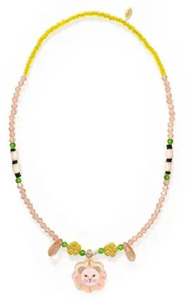 Plongez dans l'univers exotique de la jungle avec ce collier composé de perles en acrylique et de trois charms : un majestueux lion et deux fleurs. Ce collier allie style et résistance. Son double fil élastique assure une solidité optimale tout en garantissant un enfilage facile, sans fermoir.