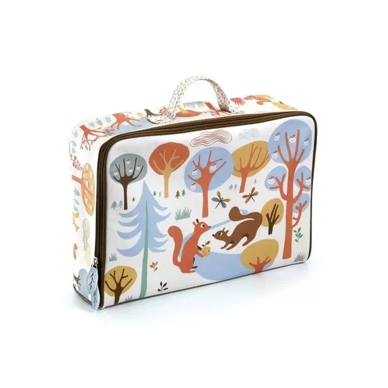 Une valise aux douces couleurs, joliment illustrée d’un paysage automnal avec de petits écureuils. Parfaite pour emporter ses affaires pour les vacances ou le temps d’un week-end. Cette valise est imperméable. Son intérieur textile se compose d’un grand compartiment et de deux pochettes. Légère, elle se transporte facilement grâce à son anse.