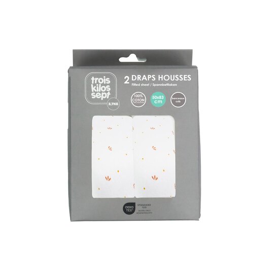 Ce lot de 2 draps-housse pour berceau de bébé, mesurant 50x83 cm, est parfait pour assurer le confort de votre enfant. Présentés sous boîte, ces draps-housse sont de couleur écrue, ornés de motifs pétales couleur camel, ajoutant une touche élégante et douce à la chambre de votre bébé. Conçus pour s'adapter parfaitement aux matelas de berceau, ils offrent un maintien optimal grâce à leurs coins élastiqués. Faciles à entretenir, ces draps-housse en coton allient praticité et esthétique, garantissant des nuits paisibles et confortables pour votre bébé.