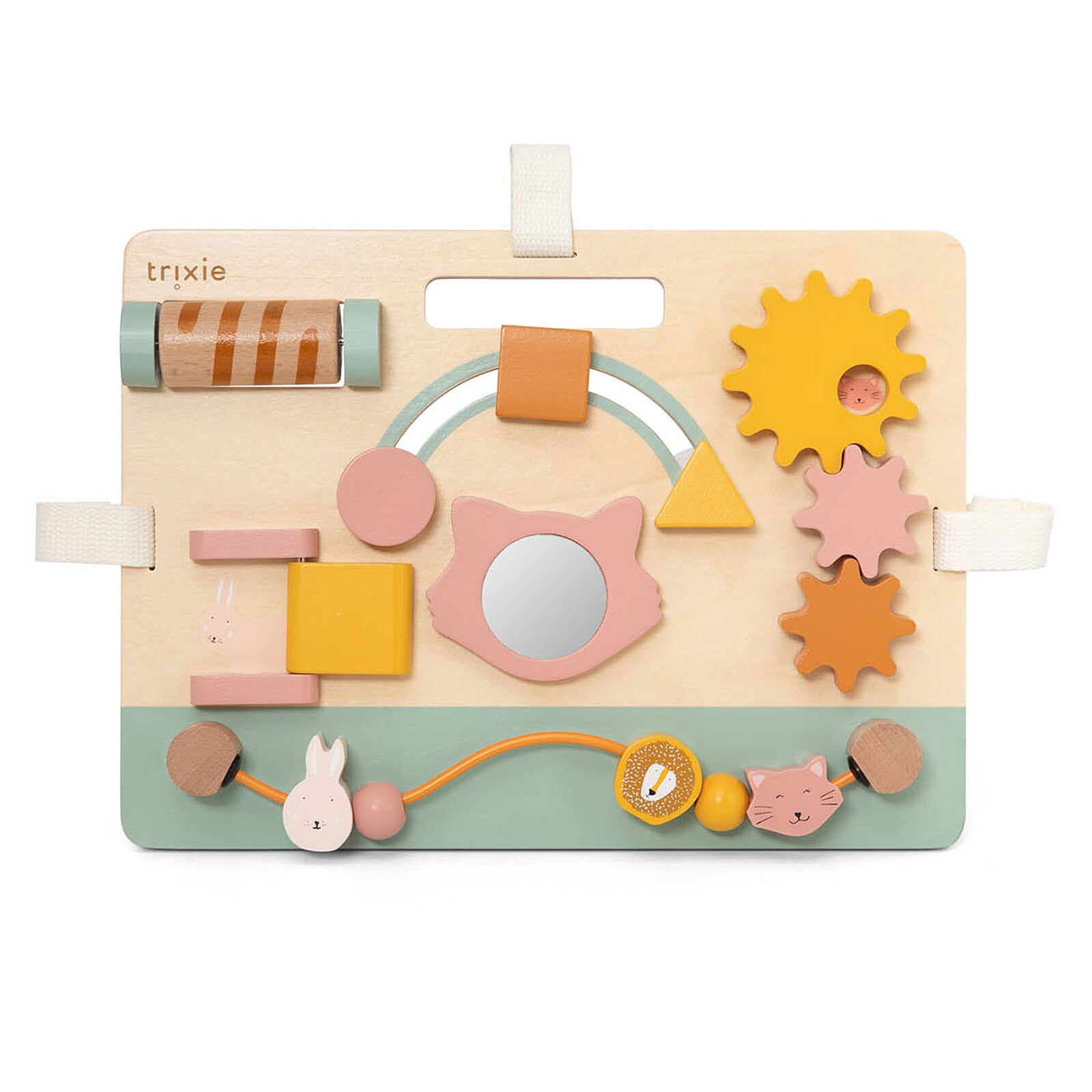 Le Panneau d'Activités en Bois créé par Trixie Baby proposera à votre bout de chou tout un tas de jeux et activités qui le divertiront pendant des heures tout en stimulant ses sens et sa motricité fine.