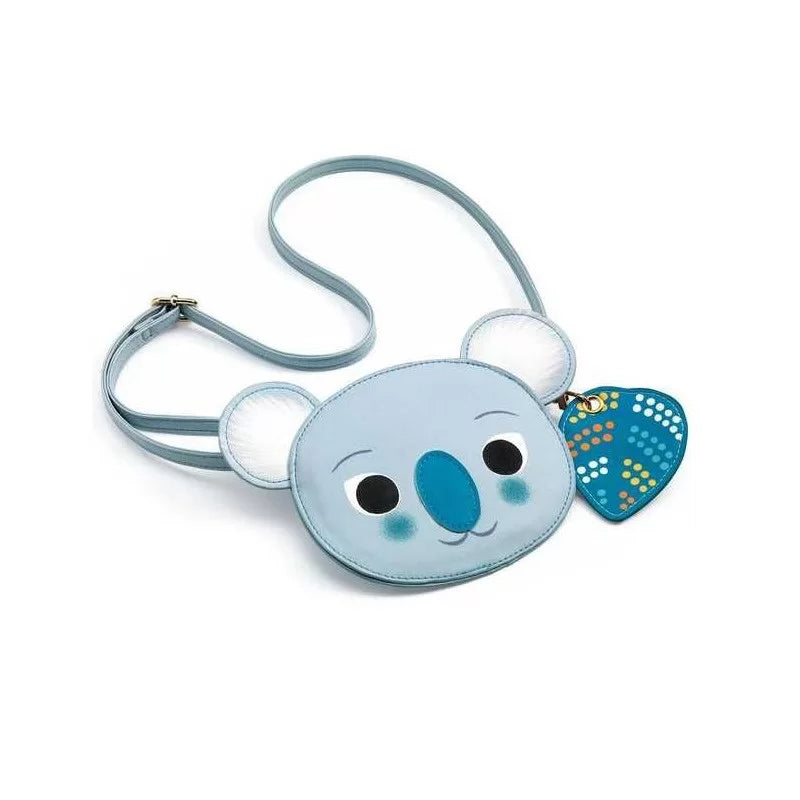 Un sac bandoulière illustré d’une adorable tête de koala et son mini porte-monnaie en forme de feuille en simili cuir. L’enfant le porte sur son épaule grâce à l’anse ajustable.